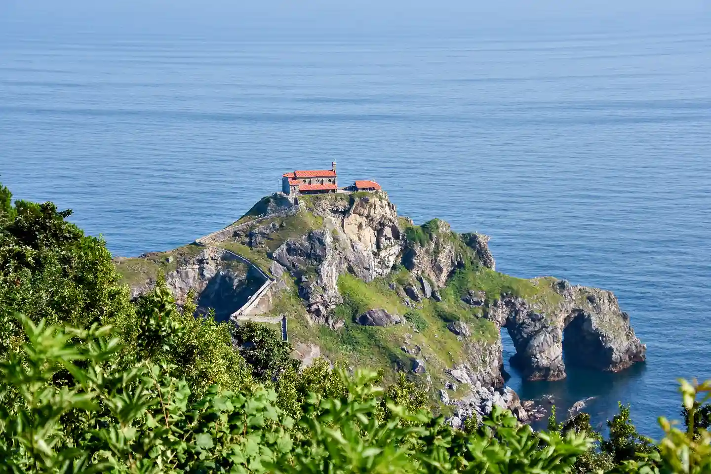 För att se mer av omgivningarna åker vi till tre olika utflyktsmål, Varav den första är nära att ta knäcken på oss. Gaztelugatxe är en halvö i Biscayabukten med ett berömt och ofta avbildat kapell på toppen. För att komma dit måste man klättra först nedför långa branta stigar ner mot stranden, och sedan uppför ännu brantare trappor mot halvöns topp. Och så tillbaka hela vägen igen. Vi gjorde det i 35 graders värme och flämtade som fiskar på land efteråt.