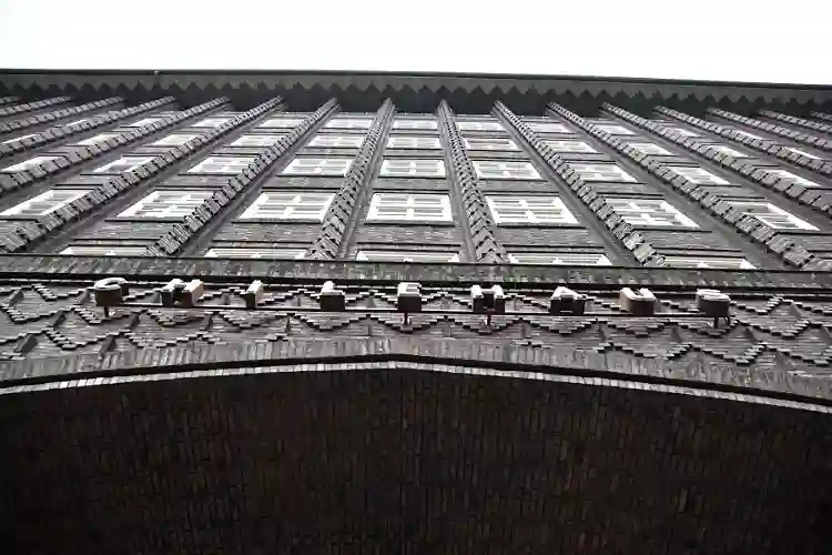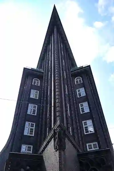 Strax därpå passerar vi ännu en berömd byggnad, Chilehaus, med sin svängda fasad och sitt superspetsiga hörne. Det är en fascinerande byggnad med massor av dekorativa detaljer i jugendstil. I bottenplanet huserar bland annat en underbar butik som heter Manufactum. Här kan man hitta de mest udda designprylar man kan tänka sig. Dyrt, men kul.