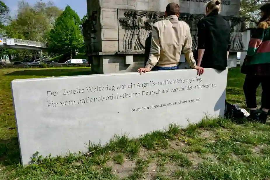 På vägen tillbaka till hotellet nästan snubblar vi över en märklig plats, en liten gräsplätt där man samlokaliserat minnesmärken från olika tidsepoker. De är inte alltid överens, här finns såväl heroiska krigshyllningar som en ursäkt för nazistregimens förbrytelser. En installation uppmärksammar de som mördades under Hitlertiden. Stället gör oss ganska betryckta.