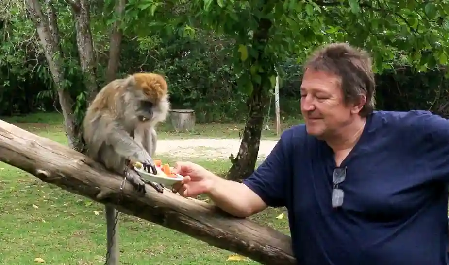 Vi blir först chockade när vi ser att den lilla makakhonan som sitter i ett träd på gården är fastkedjad vid trädet. Men Marco förklarar att apan följde med från den förre ägaren, och att hon inte klarar sig  på egen hand. Det finns vilda makaker på ön och ibland på nätterna kommer de in på gården och gör de henne illa. Kanske är det därför hon är lite tjurig, och rentav svartsjuk när Marco låter en gäst mata henne…