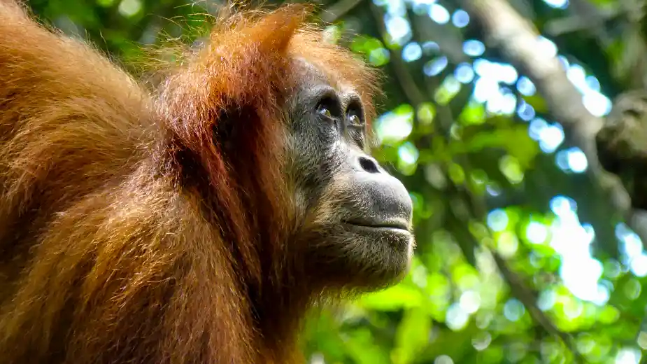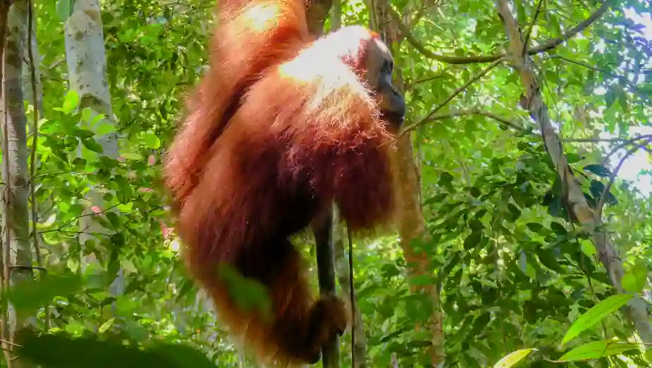 Från Bukittinggi tar vi oss upp till Sumatras nordöstra del, där det fortfarande finns vidsträckt vildmark och en stor nationalpark med en population av orangutanger. Dessa fridfulla djur var en gång vanliga i hela Indonesien, men skogsskövling, främst för att skapa stora oljepalmsplantager har förstört det mesta av orangutangernas livsmiljöer i landet. Så nu finns de bara kvar på några få platser i landet.