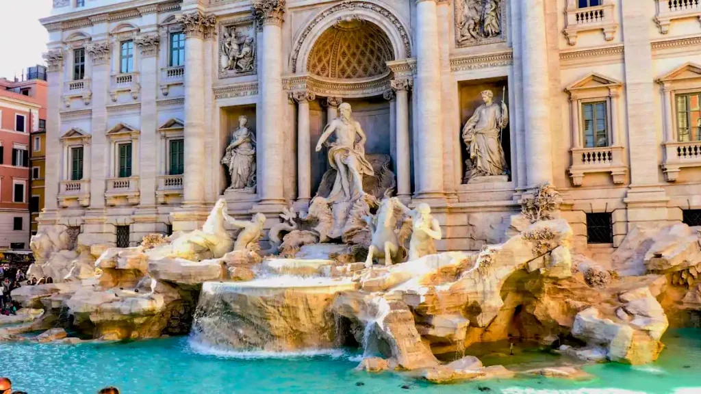 I den smala änden av Piazza di Spagna tar man Via di Propaganda söderut och trasslar sig via smågator fram till Fontana di Trevi, den bombastiska fontänen som Anita Ekberg badade i i filmen La Dolce Vita. Den är verkligen en fest för ögat detta exceptionella konstverk med havsgudar, hästar, vattenfall och dammar.