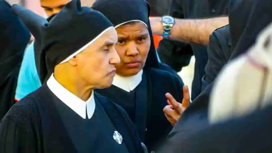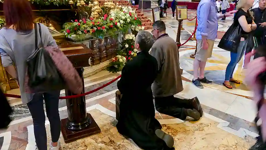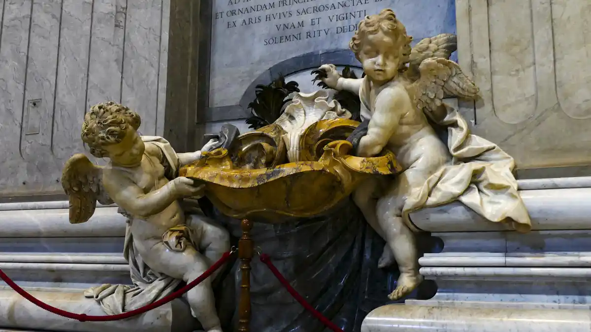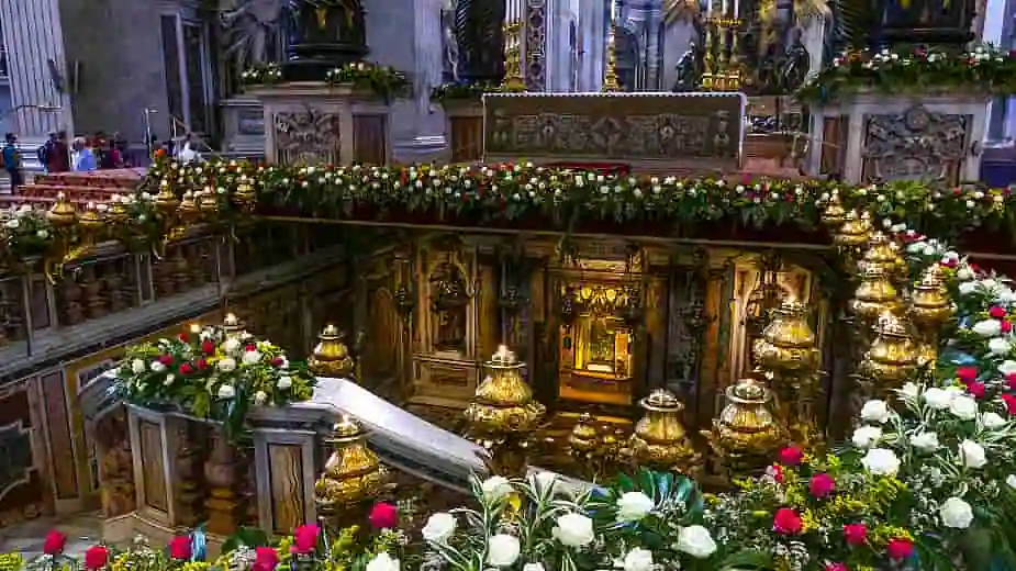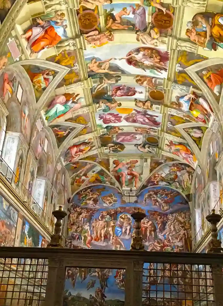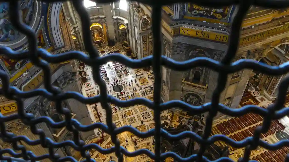 Det går faktiskt att komma ända dit, upp i och till och med ovanpå den väldiga centralkupolen. Då måste man samla mod och kraft och klättra uppför en lång rad trappor, vilket vi gör. På slutet upplever man nästan en sorts svindel fast man är i en trång trappa, och det beror på att att väggarna, som ju är insidan av kupolen, lutar mer och mer inåt, över den smala trappan.