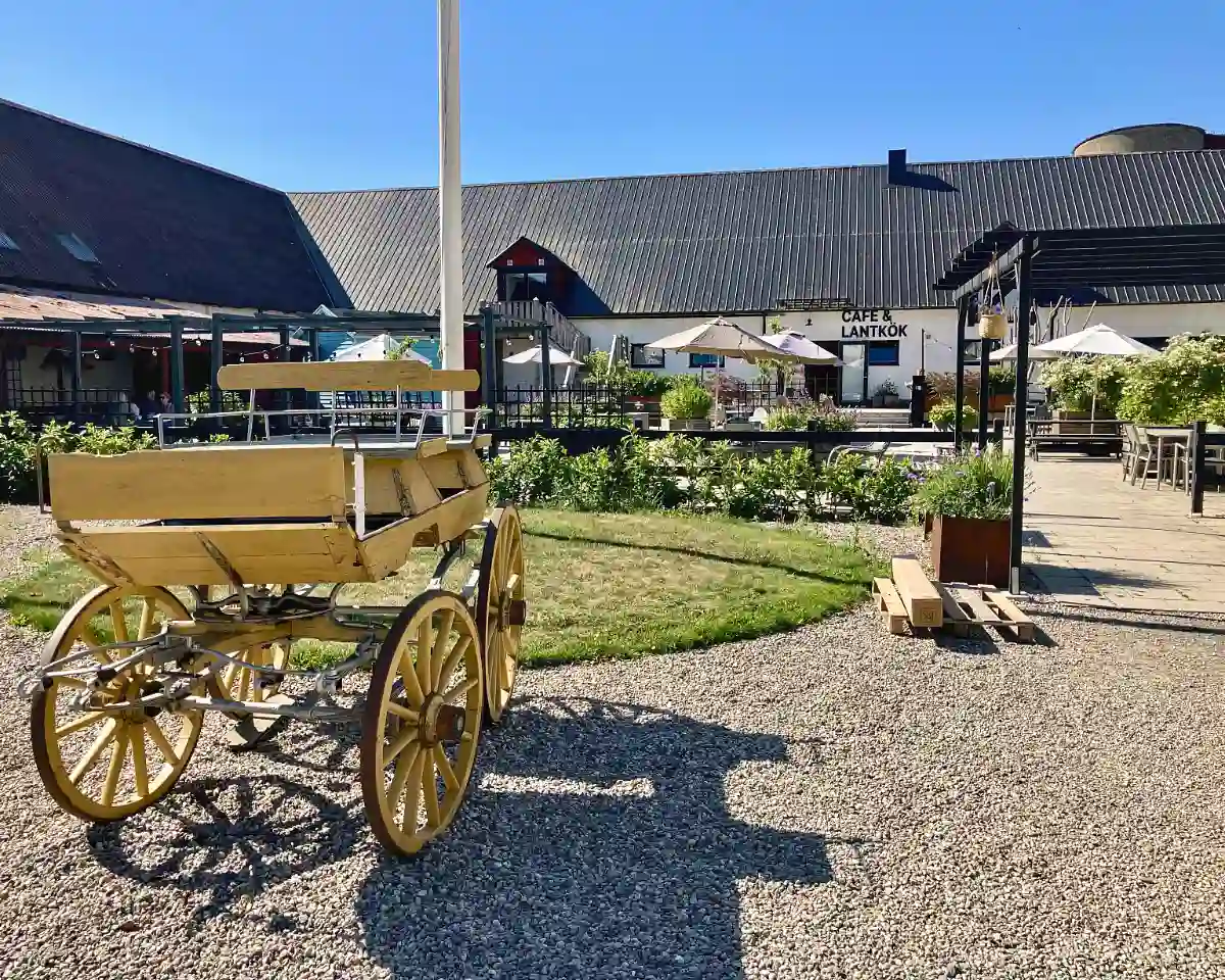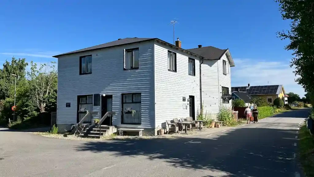 Och den där restaurangen då, finns den kvar? Jadå, den heter Allé och är en gourmetrestaurang med finfina omdömen. De har numera också rum till uthyrning så byn Svinaberga, ett par stenkast från Kivik där alla dessa byggnader ligger, har blivit ett slags hotellmecka. Fast i väldigt liten skala förstås. Dessutom har Kivik Art Center etablerat en konstpark där. Restaurang Allé har inte öppet alla dagar (utom i juli) så kolla deras hemsida innan ni planerar ett besök.