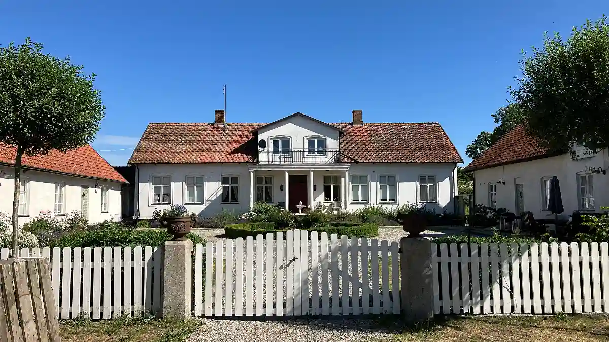 Hotellet är inte särskilt lyxigt men inte heller påvert. Här serveras en bra frukost och middag i en stil man kallar ”rustik”. En vacker trädgård med fruktträd omger huset, och det är promenadavstånd både till Borgholms centrum där det finns ett par riktigt bra restauranger, och till slottsruinen.