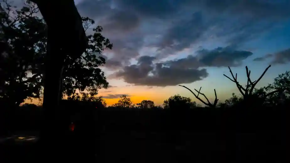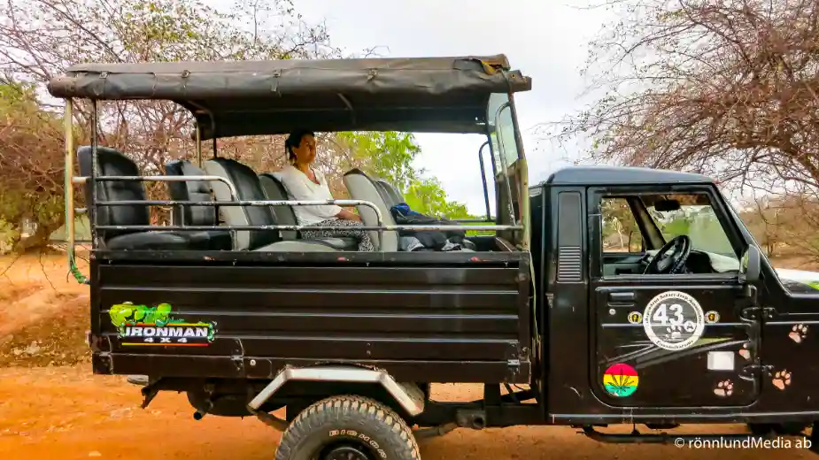 Vid tretiden när natten ännu är becksvart och stjärnklar väcks vi, klär på oss, får i oss varsin omelett och lite kaffe och transporteras sedan iväg i safaribil till Yala. När vi är framme efter någon timme går vår guide iväg och fixar entrebiljetter. Medan vi väntar kommer gryningen smygande. Vi hinner se hela färgskalan från djuprött via orange till blå himmel innan vi guiden är tillbaka och vi kör in i parken.