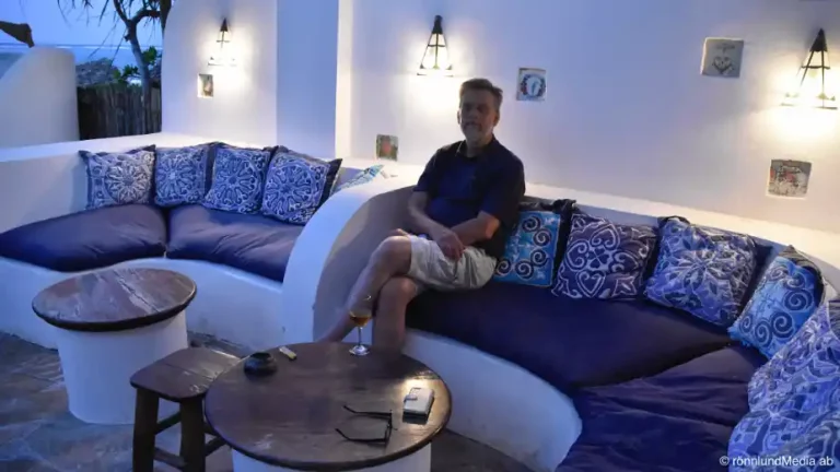 Från Stonetown går färden till andra sidan ön och norrut. Vårt mål är Matemwe där hotellen är uppradade på stranden och bakom dem ligger byn. Ganska vanligt arrangemang här, skulle jag tro. Stället vi bor på heter Zanzibar Retreat Hotel och ägs av en finsk man, Janne, som visar stora kroppsliga och personliga likheter med Leif GW Persson. Han är oerhört vänlig, maten är enormt god och hotellet är en verklig oas. Barens lilla sittyta ut mot havet är en pärla!