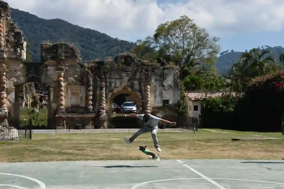 On 5:th Avenida Norte the street is sealed off for traffic and the street life is vibrant. Visitors, salesmen and performers jostle one another in the days prior to New Year’s Day. It’s a continuous party 24/7. Under the arch of Santa Catalina with Volcano Agua as a backdrop marimba bands perform. The grand xylophone marimba is a national instrument and each played by three or four performers was something we saw many times. But a disco dancing rabbi we only saw once.