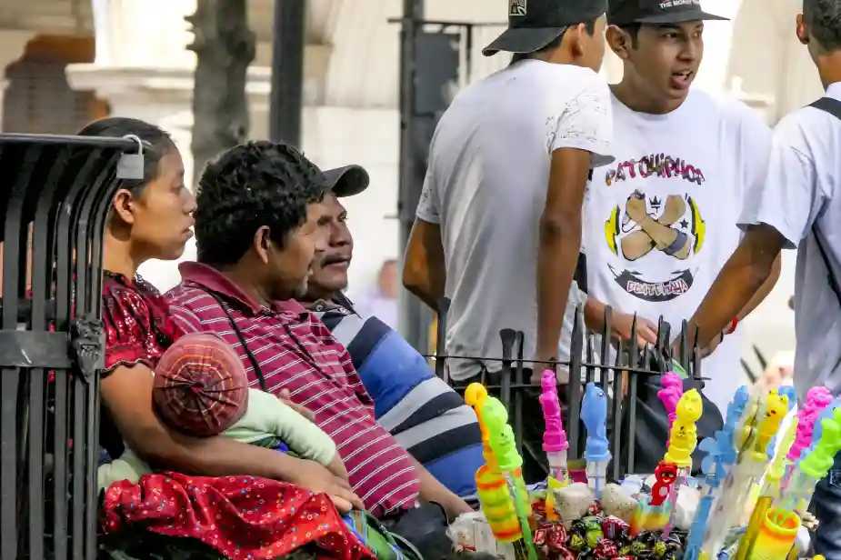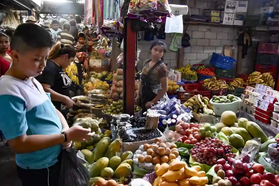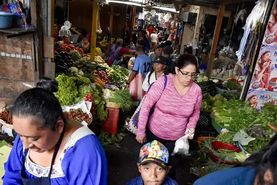 The market in Antigua is like a city within the city. A huge area with it’s own blocks criss-crossed by long narrow lanes. They lead past tables loaded with fiery red tomatoes, fresh vegetables, exotic fruit, fish, meat and electronics. It’s cramped and pushy, there are people running around carrying boxes, families with children, people in wheelchairs, all trying to move on. Traffic jams are everywhere.