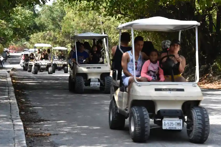 Did we mention that all gringos have to drive a golf car? And the streets are quite narrow, so there’s often chaotic traffic jams going on. We we walking, and that was obviously a bit exotic because the people in the cars often waved a hand when they passed us.